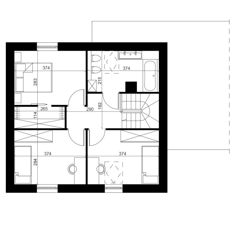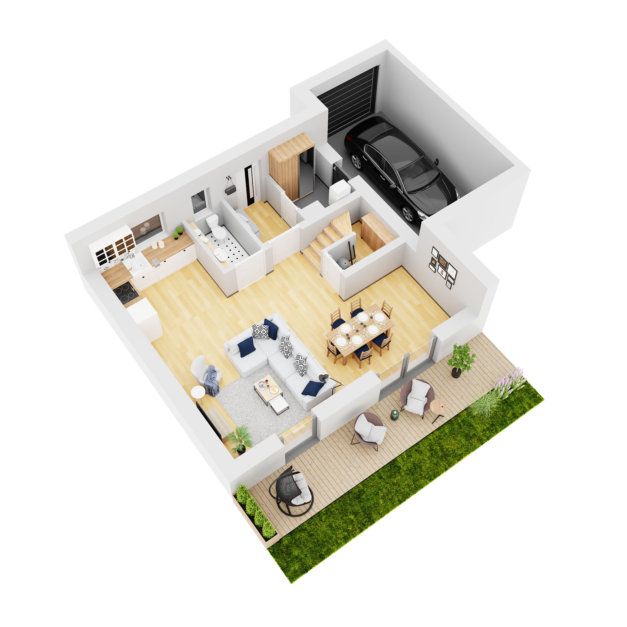 Każdy dom ma 106,61 m² powierzchni użytkowej z garażem – duża przestrzeń oraz funkcjonalny projekt układu pomieszczeń zapewniają codzienny komfort użytkowania.
